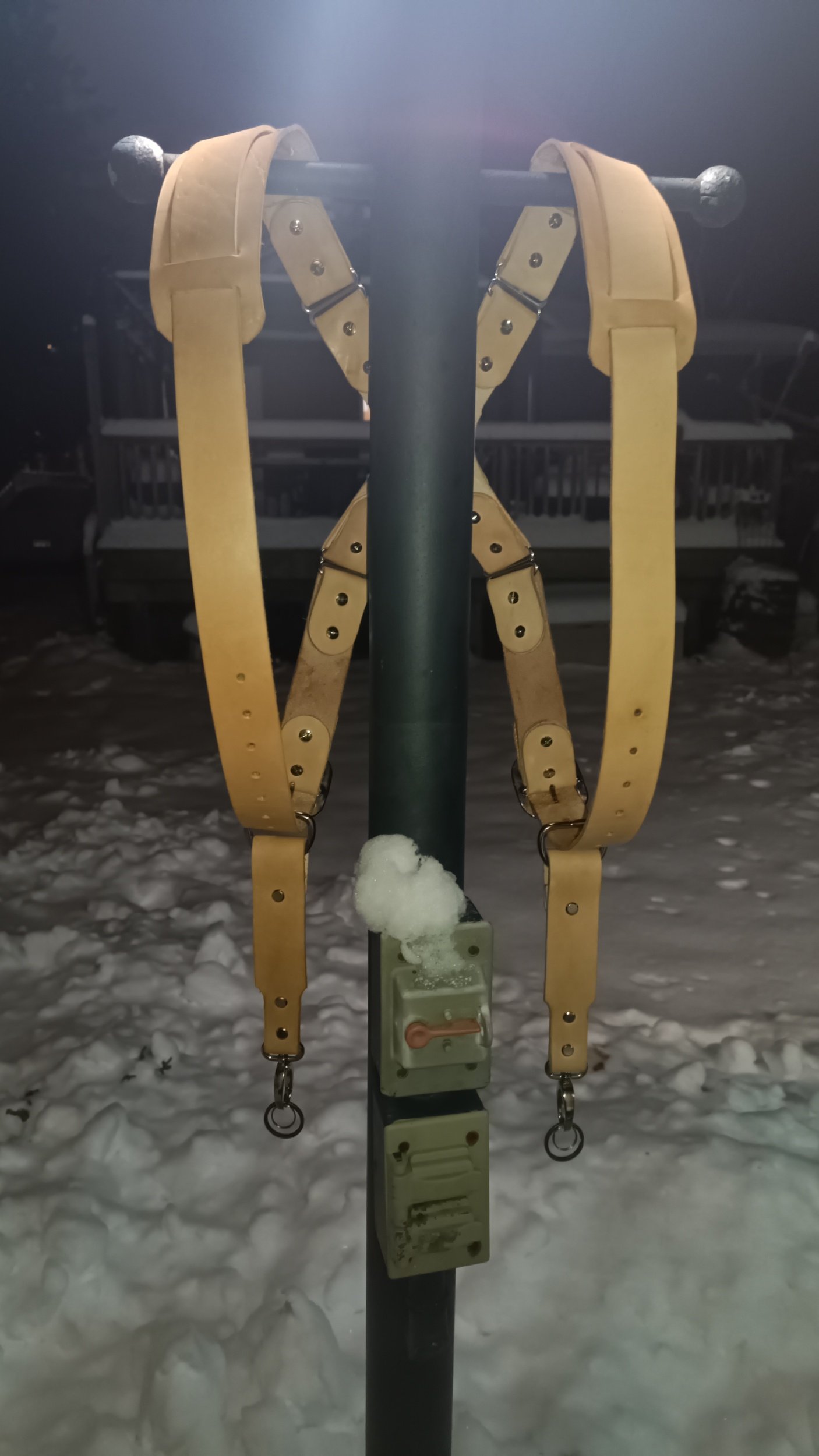 This was a fun project! This set of camera strap harness will be used by a wedding photographer who can now proudly display her logo across her back while having a timeless piece of kit to keep her cameras light and steady.